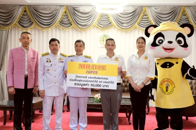 In addition, MR. D.I.Y., led by Mr. Arnupharp Kongmalai, Vice President of Marketing Department, and Ms. Suparee Jayapoom,Head of Investor Relations Department, donated funds of 50,000 Baht along with MR. D.I.Y. essential products to the Royal Forest Department in support of forest ecosystem restoration efforts. The donations were received by Mr. Patpong Samittipat, Inspector General and Acting Deputy Director General of the Royal Forest Department, Mr. Anan Pinnoi, Director of the Forest Plantation Promotion Office, and Mr. Anunchai Thubthim, Director of the Green Area Restoration Network Division.